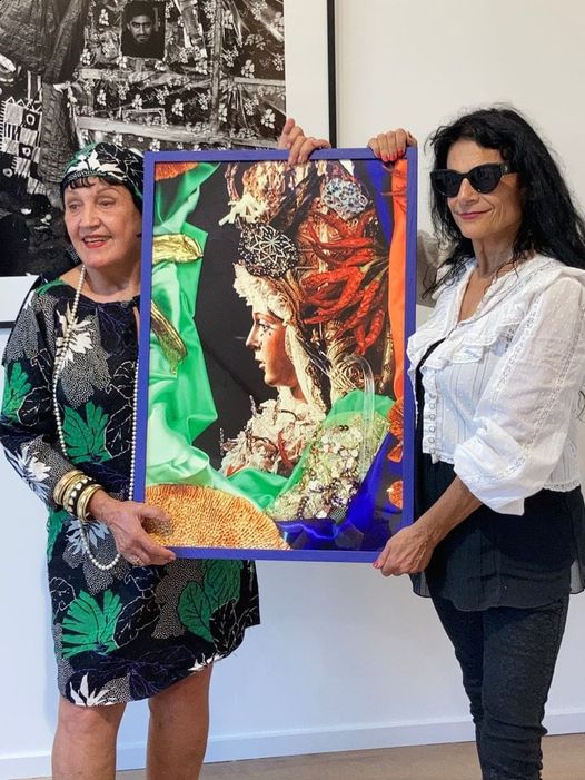 Christine Spengler, présente « Renaissance », une œuvre mixte ou alternent ses dernières créations couleurs entourant ses grandes photos emblématiques noir et blanc du « Cimetière des martyrs en Iran » (1979) à la « Jungle de Calais » (2016). Sur le mur elle a écrit les phrases clefs qui l’ont ramenées du deuil à la vie, du noir et blanc à la couleur.